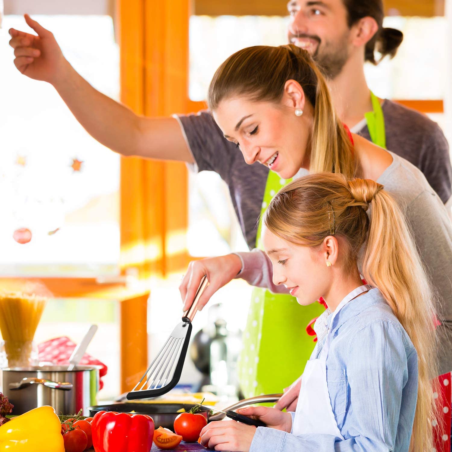 - Easy to Store and Clean: This silicone top soft edge slotted spatula is designed with a handy hanging loop on the top, you can hang it on the wall when not using; With smooth appearance, this slotted spatula is easy for you to clean