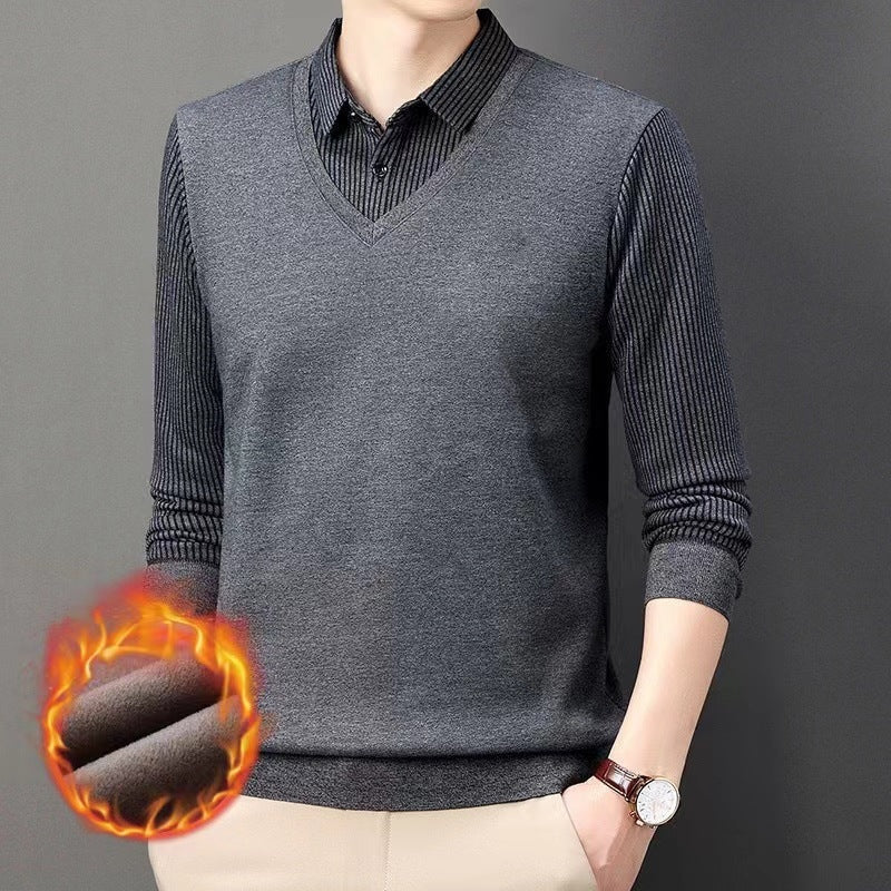 Men's Fake 2-Piece Knitted Shirt ×1