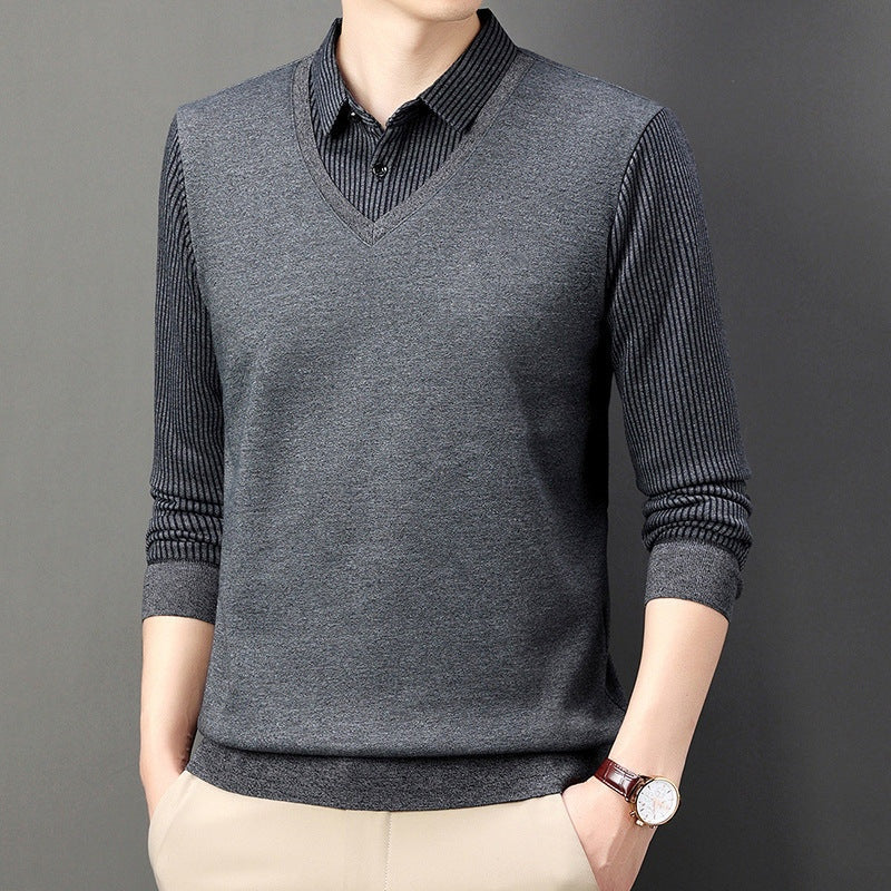 Men's Fake 2-Piece Knitted Shirt