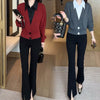 Cropped Faux Two-Piece Stand-Up Collar Shirt with Flared Pants