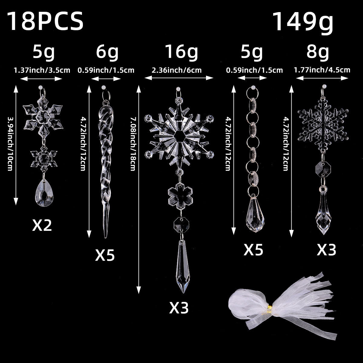 - Package Includes: 18 Crystal Christmas Snowflake Ornaments