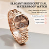 DAZZLING IRIDESCENT DIAL - The unique color-shifting face catches light beautifully from every angle, making a dynamic statement and adding a touch of sophisticated charm that ensures you always stand out from the crowd.