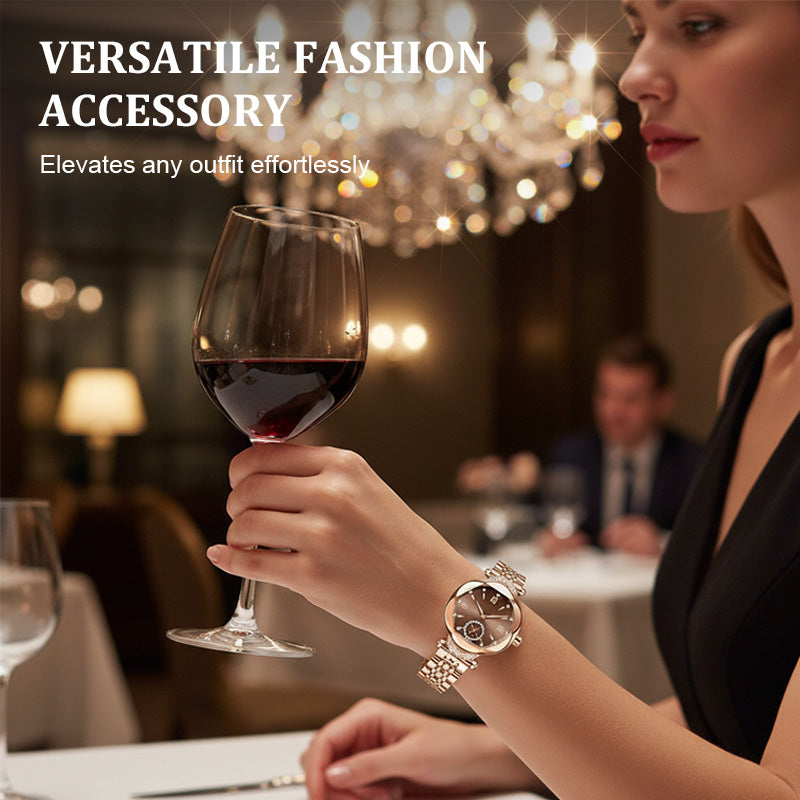 DURABLE STAINLESS STEEL - Crafted from high-quality stainless steel and alloy, the watch is not only chic but also resistant to tarnish and wear, providing long-lasting comfort and reliable durability for everyday enjoyment.