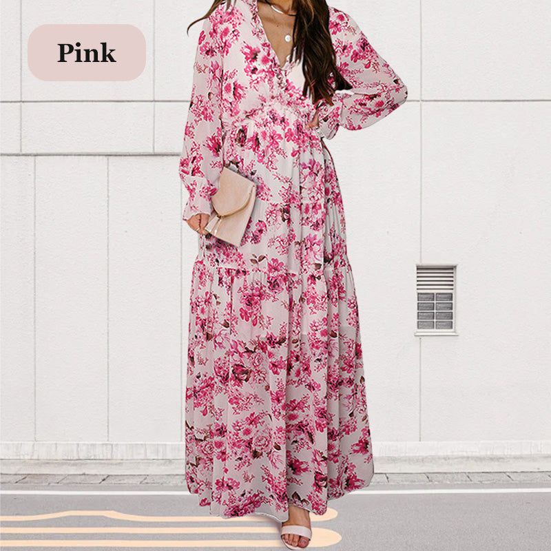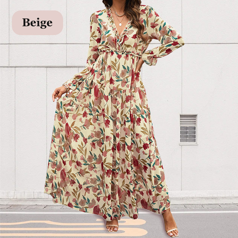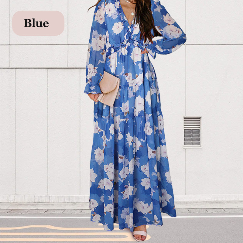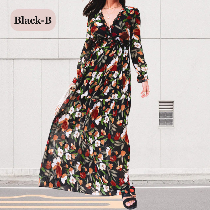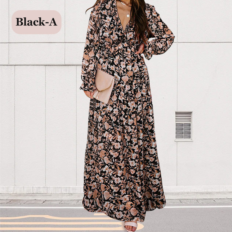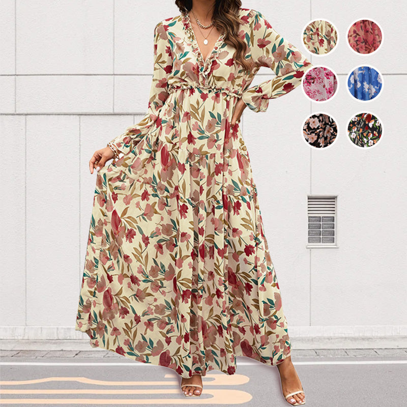 💞Spring New Arrival💞Women's Floral V-Neck Long Sleeve Flowy Dress
