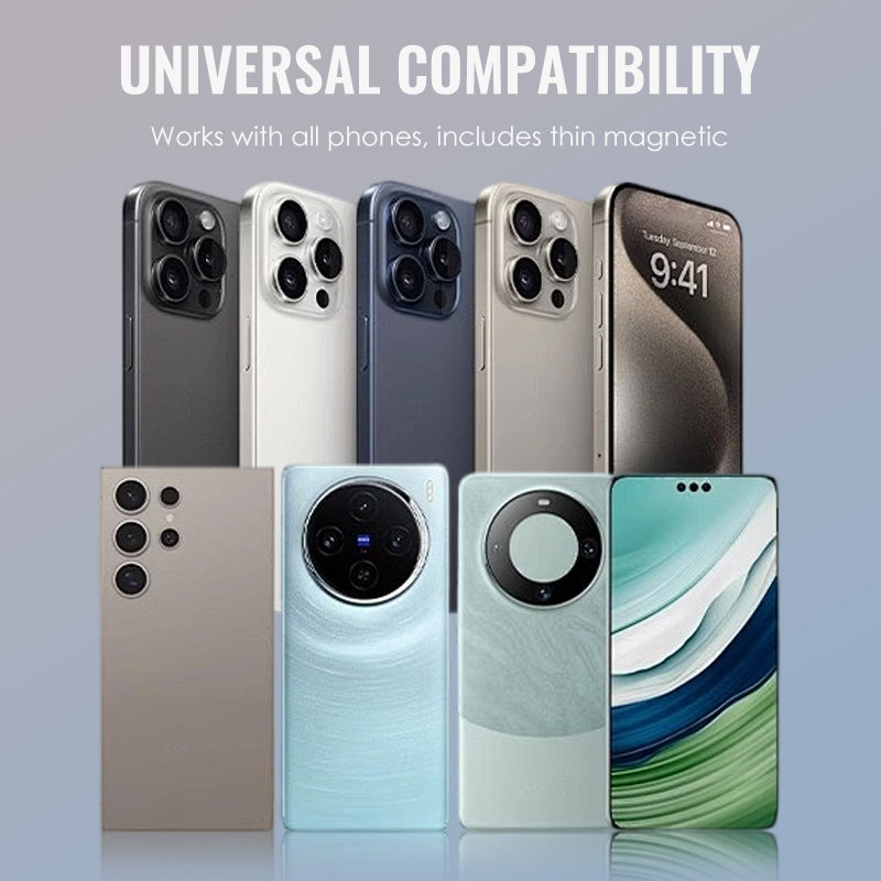 Comes with an ultra-thin magnetic ringāworks for non-magnetic phones (just stick the ring on your phone case first).