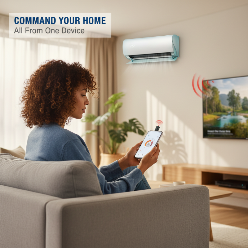 APP-ENABLED TRANSFORMATION - Instantly convert your smartphone into a powerful universal infrared remote control by simply downloading the dedicated app and plugging in the adapter. This seamless integration provides unparalleled convenience, making your phone the central hub for all your home appliance controls without needing multiple physical remotes.