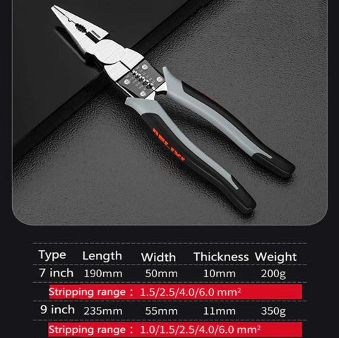 Multifunctional Pliers - This tool can be used as a wire stripper also works as a wire cutter, Pliers. the wire stripper can be loosened with a screwdriver. It can cut 3-inch steel nails, 4², 6², 8² wire ropes, Can strip 1.0²,1.5², 2.5², 4², 6², wires.