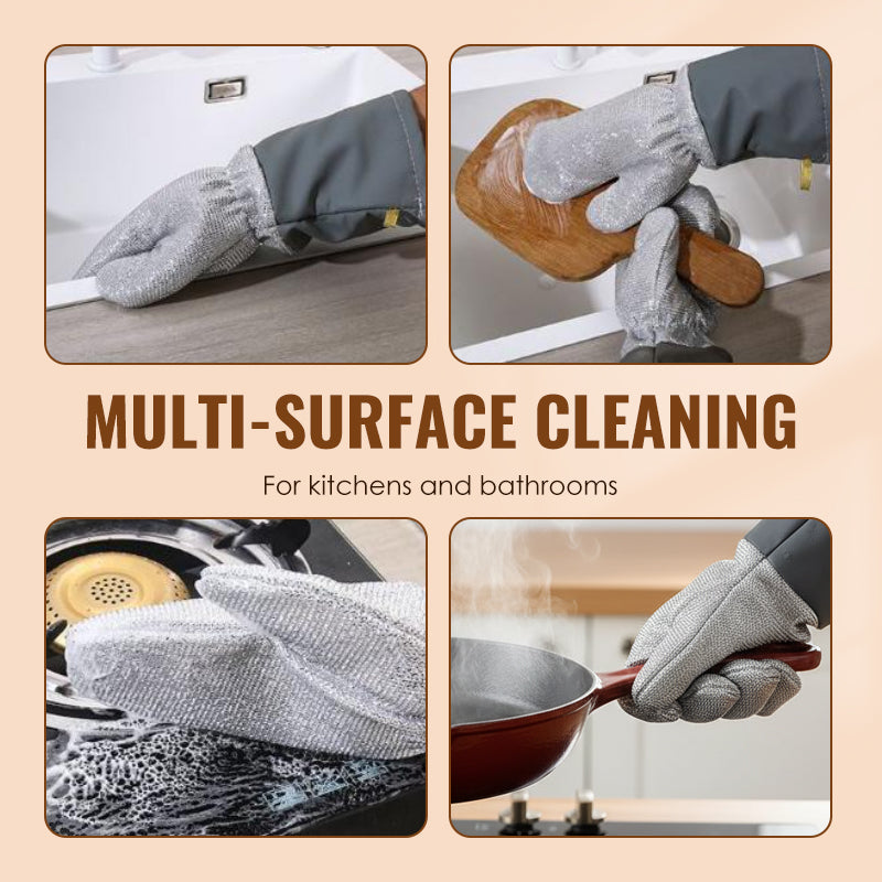 VERSATILE CLEANING TOOL: Go beyond dishes. This multi-purpose glove is perfect for deep cleaning sinks, stovetops, and even bathroom tiles. It effectively replaces multiple tools, streamlining and simplifying your household cleaning routine.