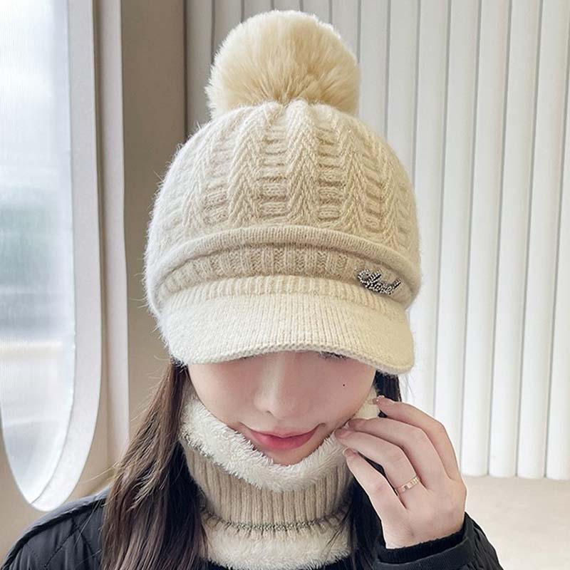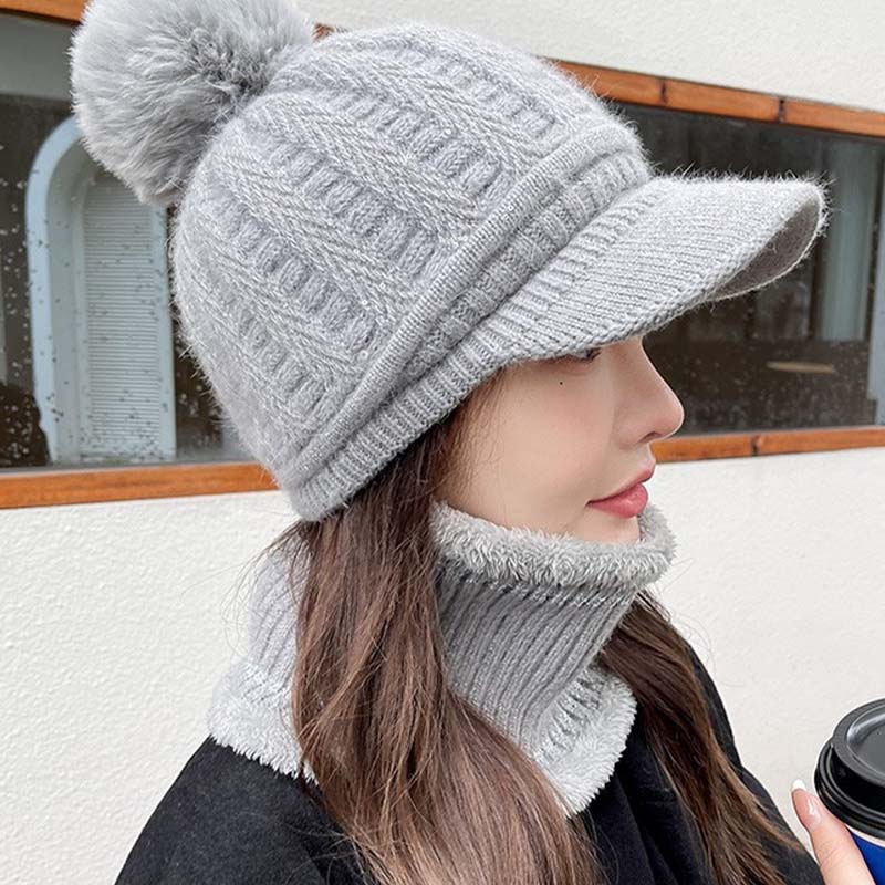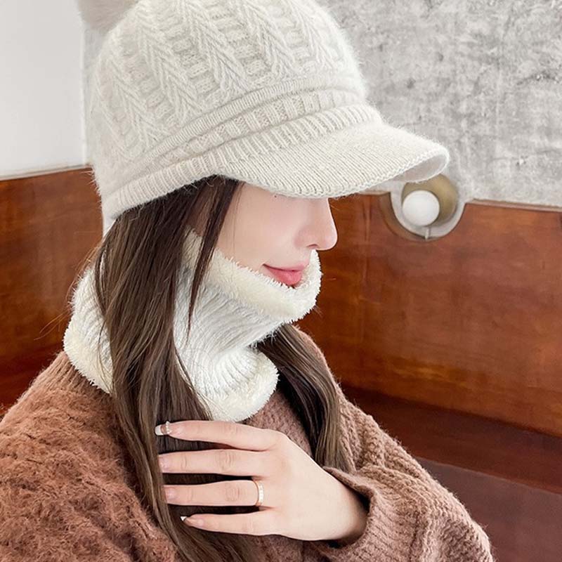 CHIC VISOR AND POM-POM DESIGN - Effortlessly elevate your winter wardrobe. The stylish visor adds a modern touch while the playful pom-pom brings a classic charm, making this set a versatile accessory for any casual outfit.