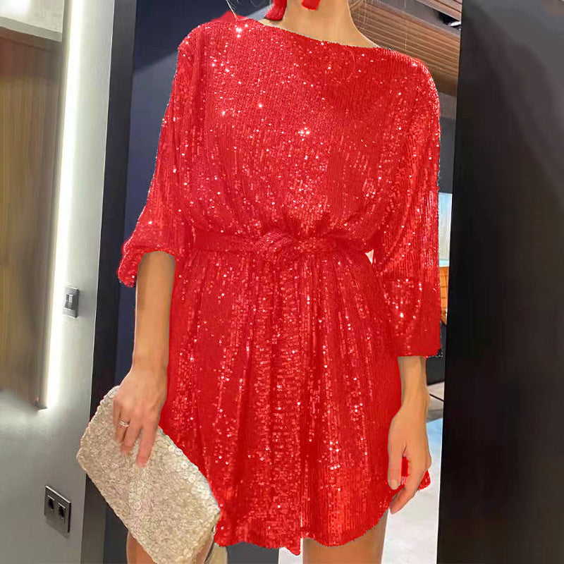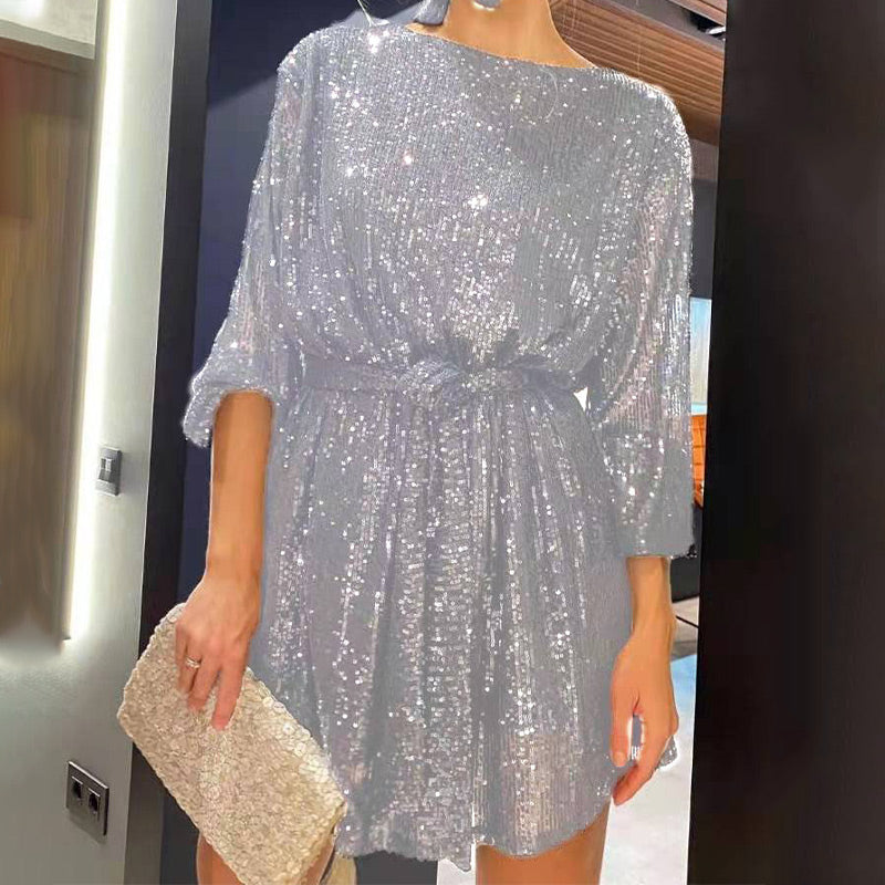 Sequin Tie Waist Mini Dress