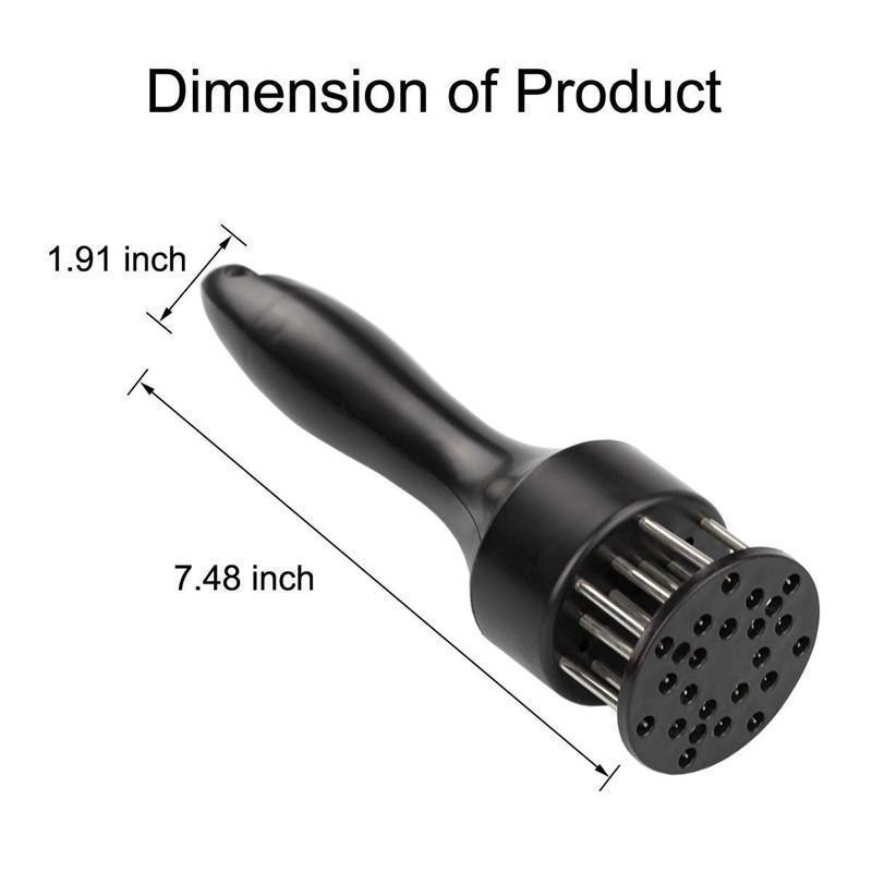 - Tenderizes meat perfectly - 21 razor sharp multiple steel pine needle-shaped knife blades on the tenderizer makes it easy to cut through deeply even on the toughest meats and helps cook more evenly by reducing shrinkage by simply pressing it on the meat several times and repeating.