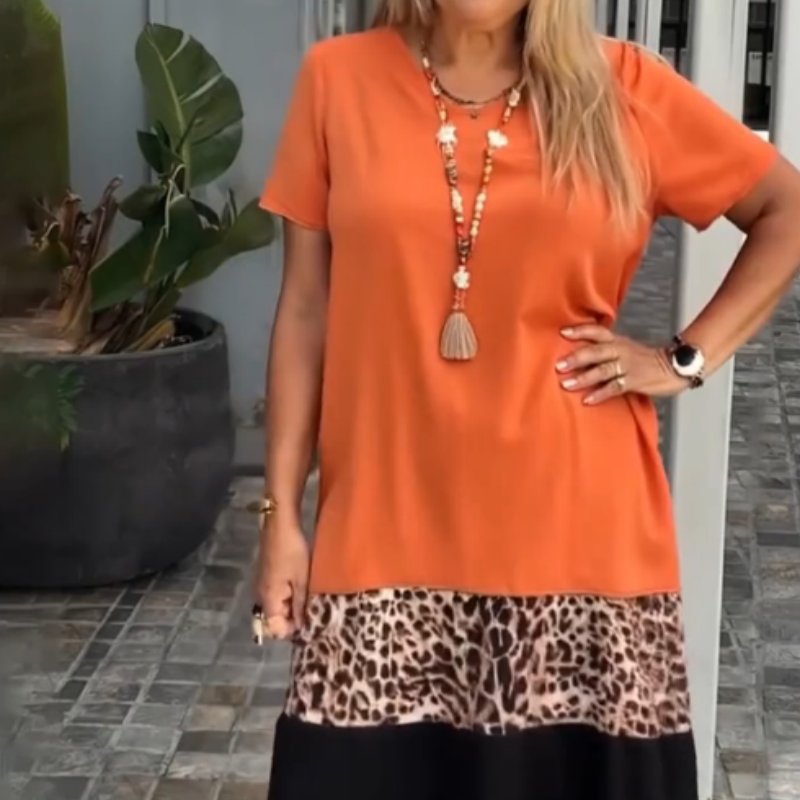 EYE-CATCHING COLOR BLOCK: Designed with a striking three-color block pattern, including a bold leopard print section that adds a trendy and stylish touch, making it perfect for any casual or relaxed occasion.