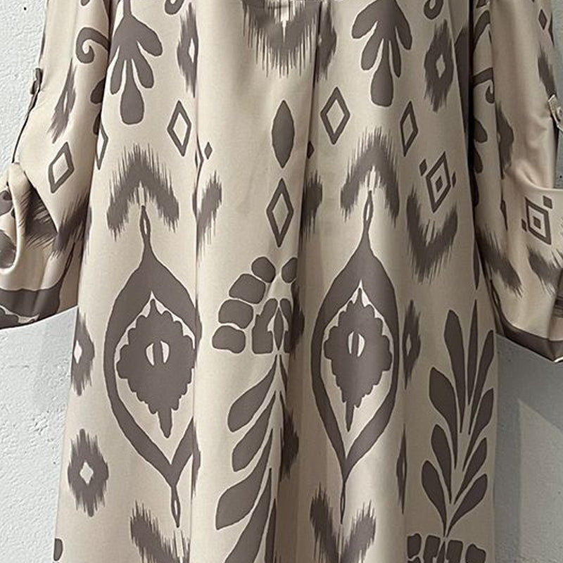 STYLISH GEOMETRIC PATTERNS:Â Highlighted by intricate ethnic-inspired motifs, this dress blends traditional artistry with modern aesthetics, offering a bold and unique look.