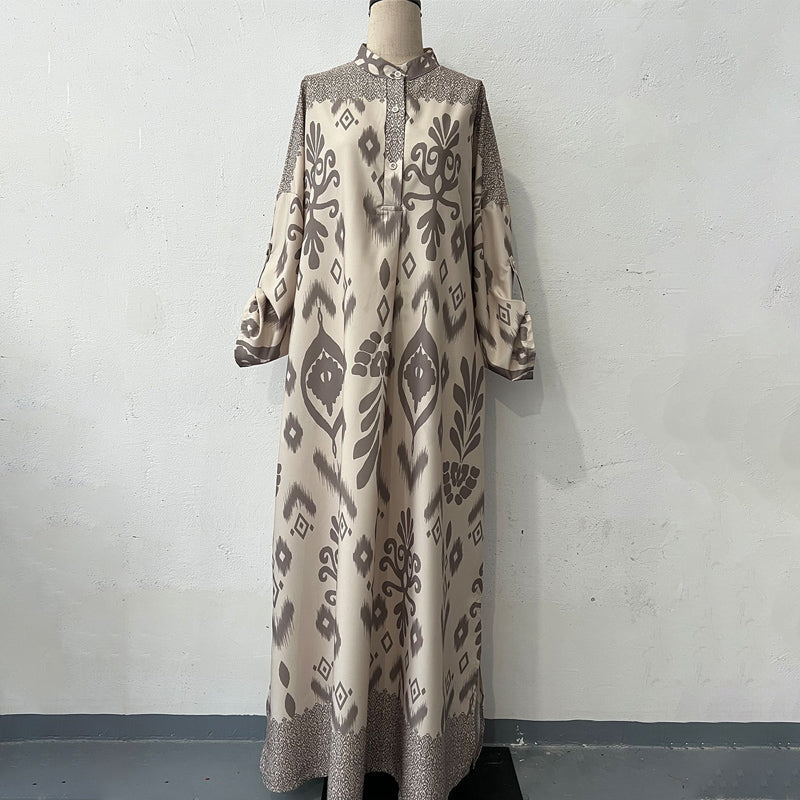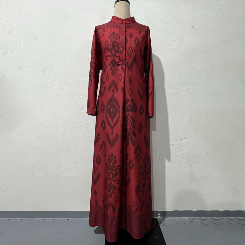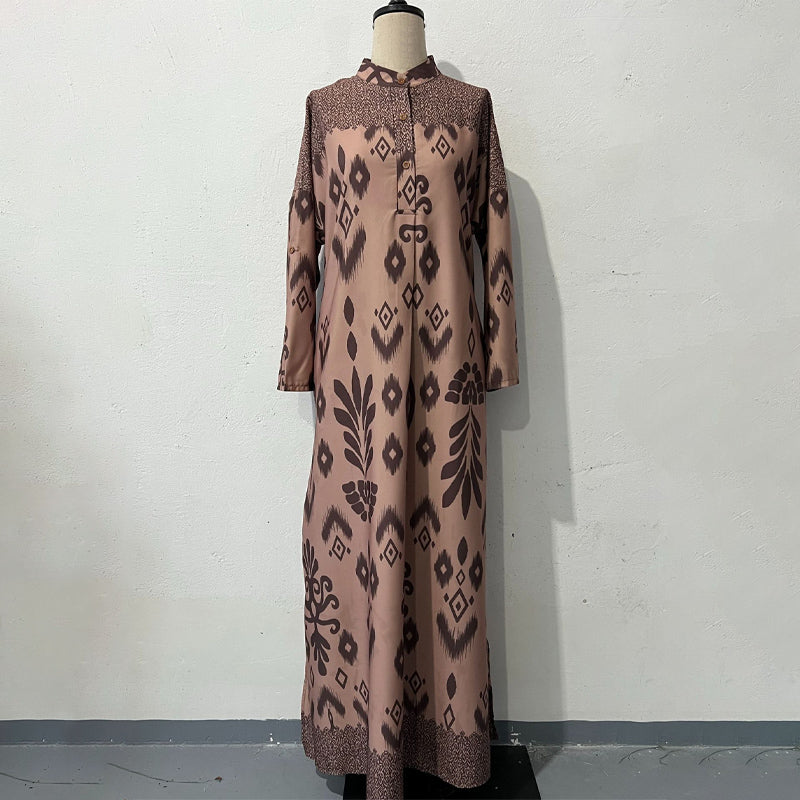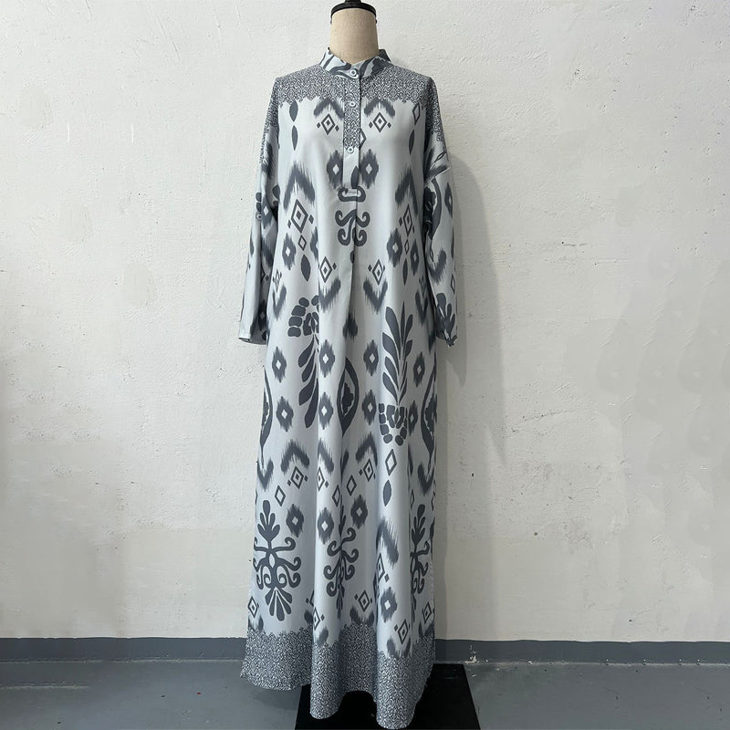 MODEST AND COMFORTABLE FIT:Â The loose-fit, ankle-length silhouette and long sleeves provide modest coverage, while the tailored neckline with button accents adds a touch of refined style.